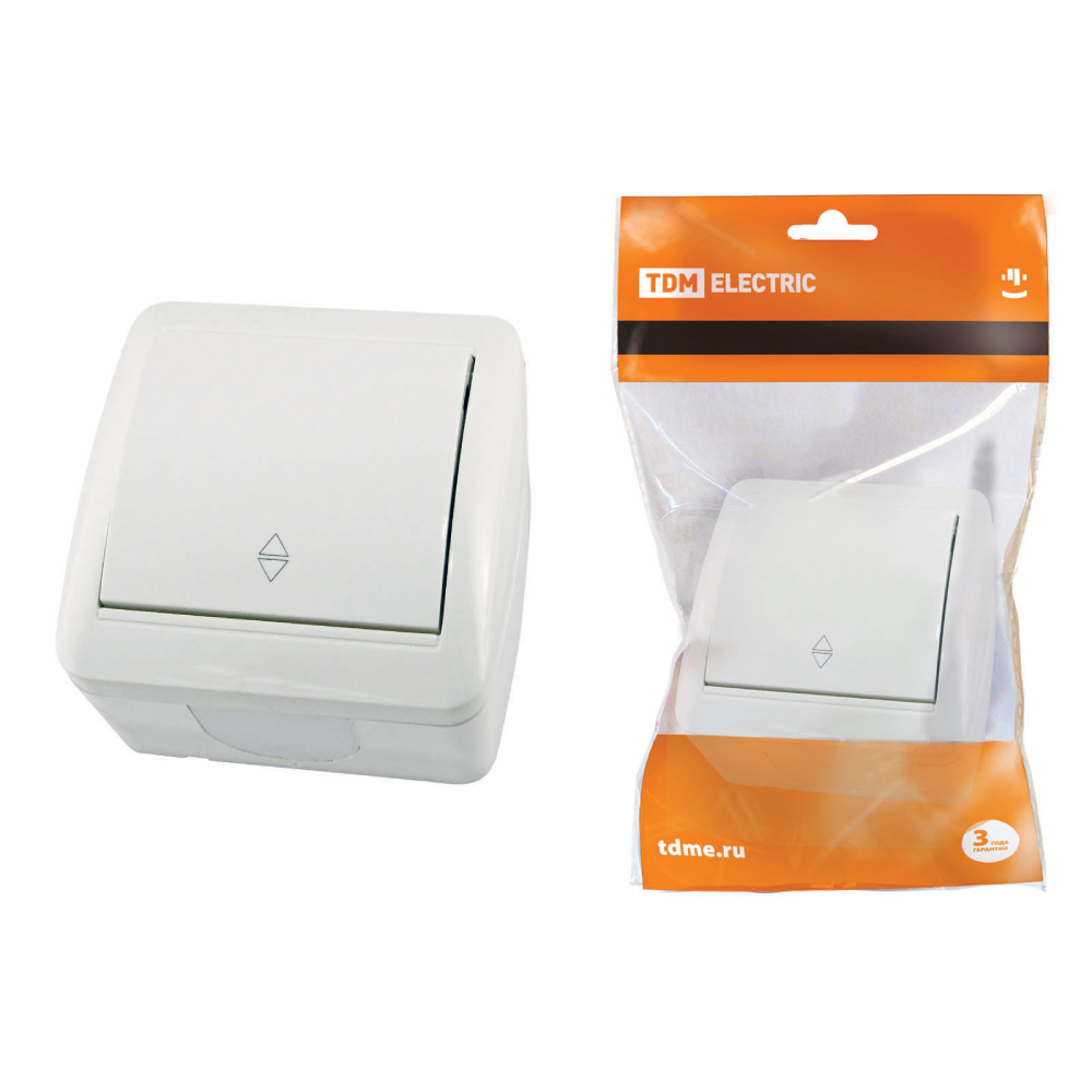 Переключатель TDM, Селигер, открытой установки, 1 клавишный, белый, 10А - подключение бытовых нагрузок к сети переменного тока и управление сетями освещения в условиях повышенной влажности и пылезагрязненности.