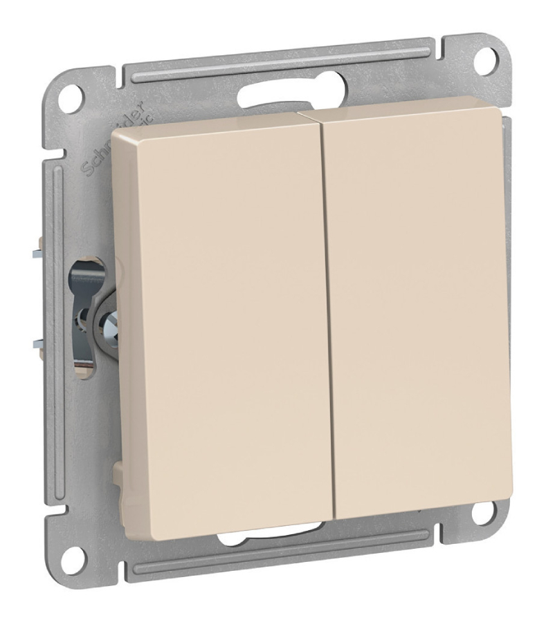 Выключатель 2 клавишный, бежевый Atlas ATN000251 используется для управления светом.