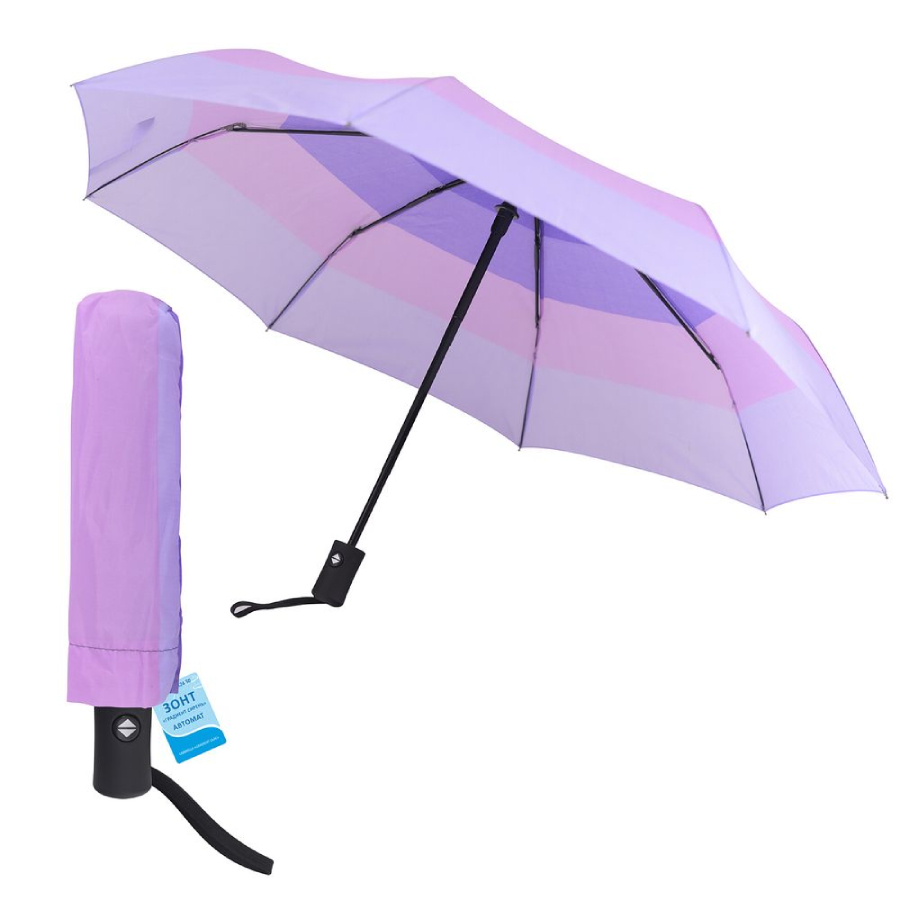 Зонт складной "Градиент Сирень" (автомат) 24.50 - раскрасьте день новыми красками с ярким сочетанием розовых и сиреневых оттенков! Зонт открывается и закрывается автоматически. Конструкция зонтика устойчива к порывам ветра. Купол изготовлен из полиэстера и металла, ручка из пластмассы. Диаметр купола 98 см.