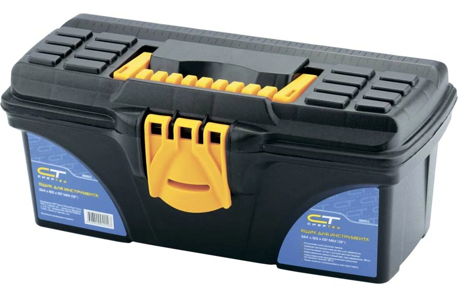 Он же — чемоданчик для инструментов. Это плоская прямоугольная коробка с откидной крышкой. Кейс удобно переносить в руках на большие расстояния, поэтому он частый спутник мастеров на выезде. Хранить много инструментов или транспортировать габаритные устройства в кейсе труднее.